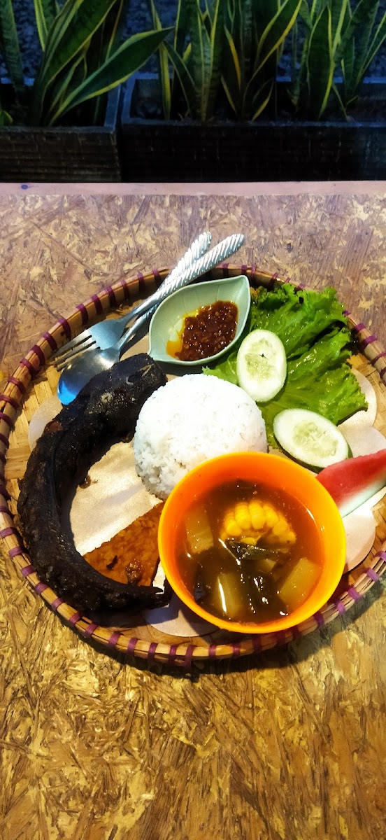 As you step inside, you’ll be greeted by a comfortable, lesehan (traditional Indonesian sitting) setup that promotes a relaxed dining experience, perfect for catching up with friends or enjoying a peaceful meal alone. The cafe's mix of comfortable seating arrangements blends modern comfort with traditional Indonesian warmth, making it an ideal spot for both casual meetups and celebrations.